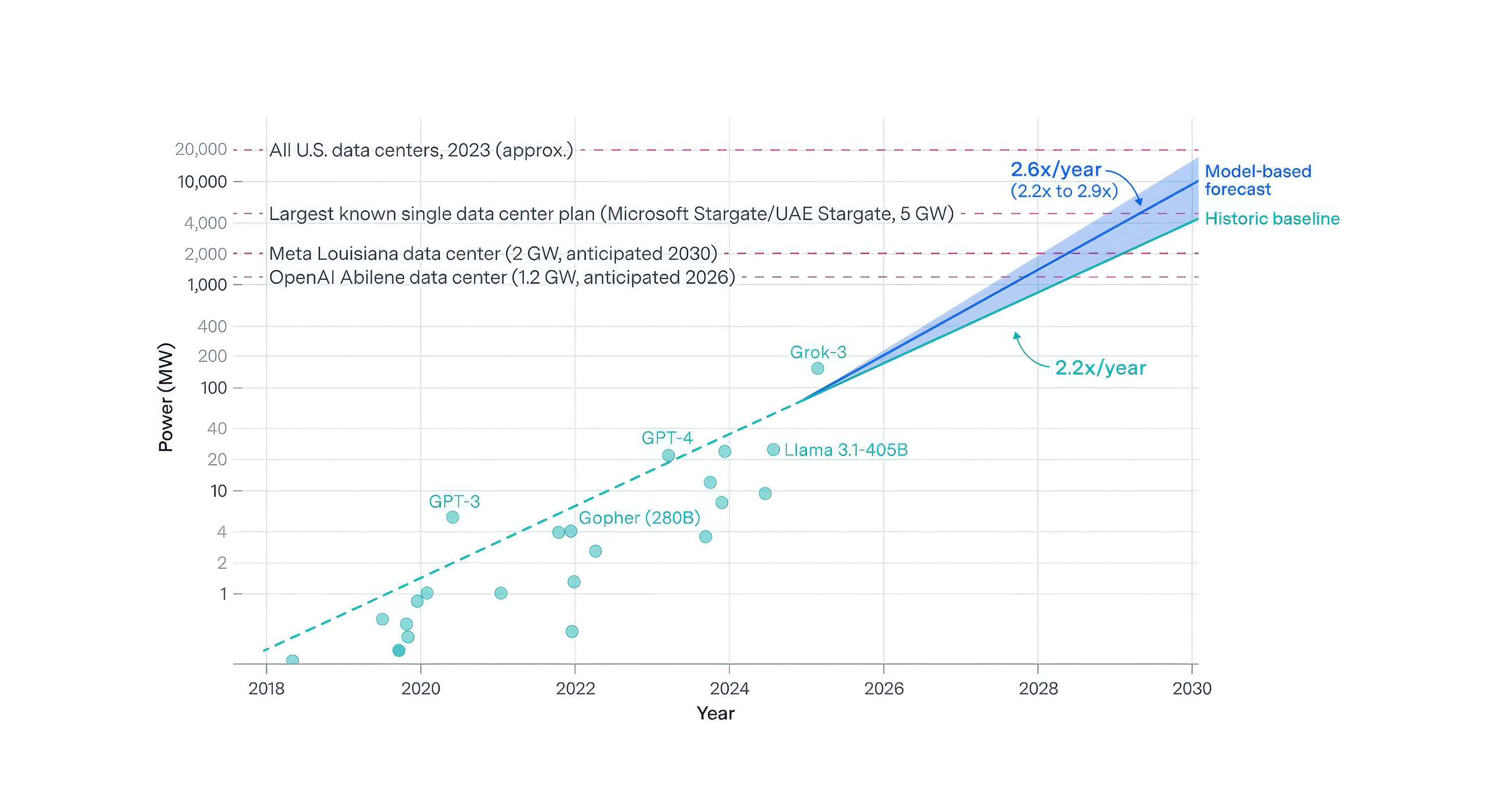 Figura 10. Crecimiento de la demanda energética de la IA de frontera. Fuente: Epoch (2025b).